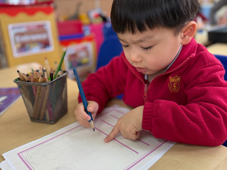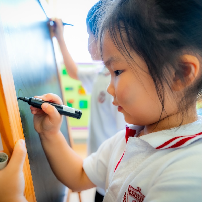 Literacy focuses on the development of reading and writing skills for each child. We understand and appreciate the importance of reading from an early age and how it improves a child’s focus, memory, empathy and communication skills. Children are encouraged to explore a range of print and books to enhance their exposure to the English language and learn how stories are structured; before learning the early mechanics of reading through our daily phonics sessions in K1 and K2.