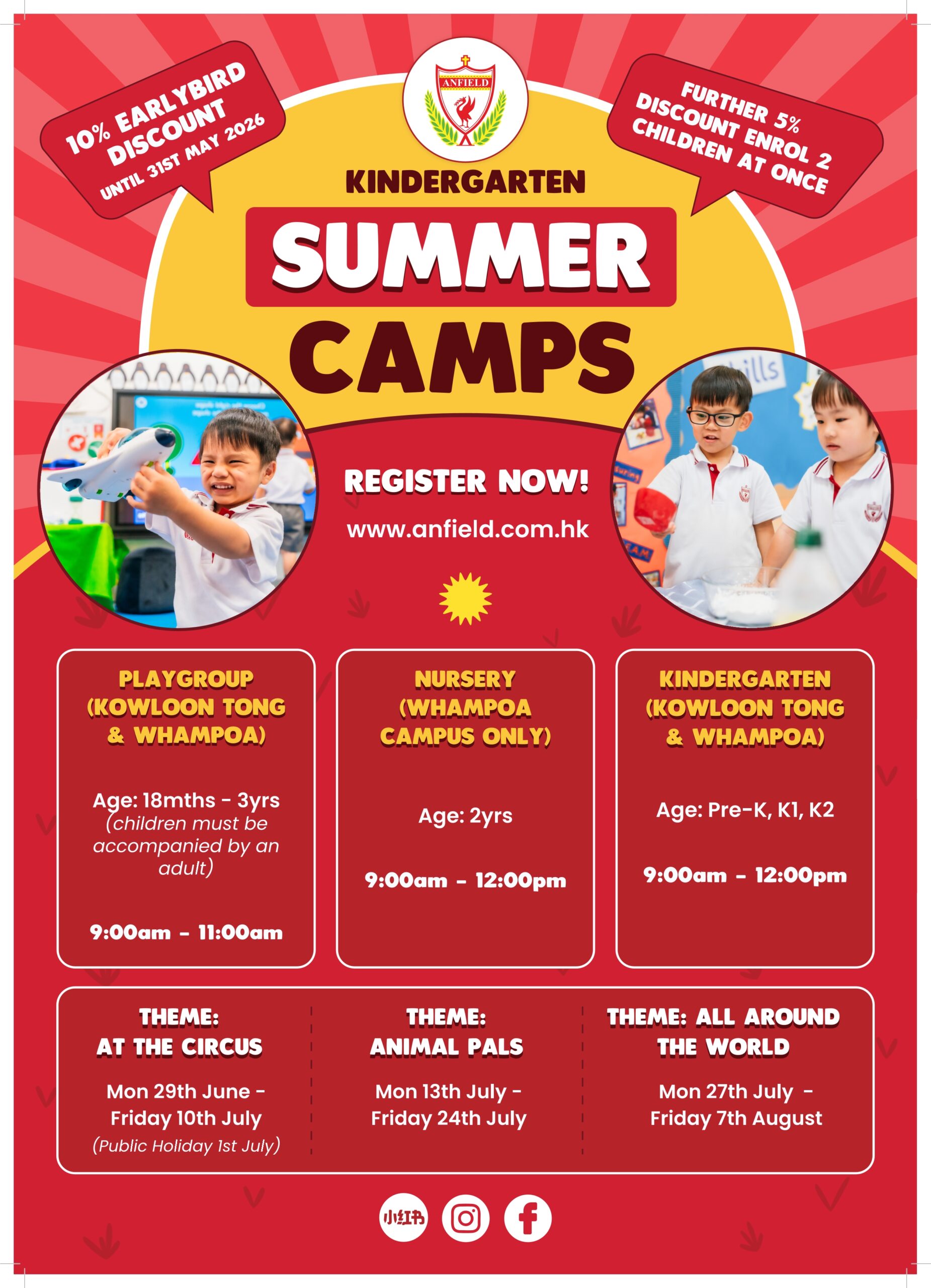 Exciting news for families! Anfield Kindergarten is thrilled to announce our Summer Camps 2026, offering a season of exploration, creativity, and fun across our Kowloon Tong and Whampoa campuses. From “At the Circus” to “All Around the World,” our themed programs are designed to keep young minds engaged and active throughout the summer.